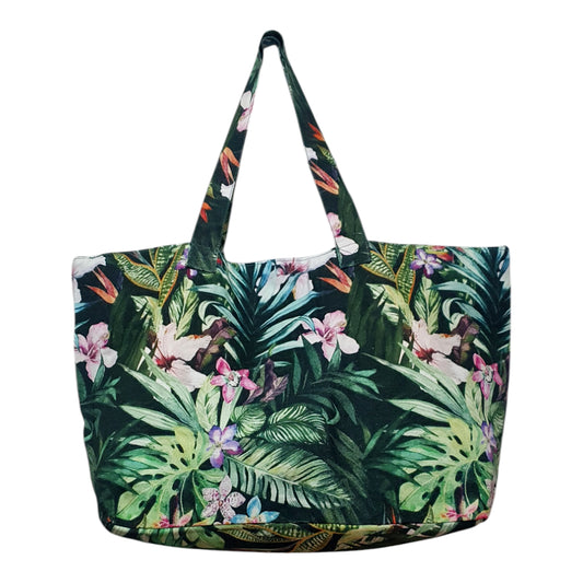 Tropical Floral Print Canvas Tote Bag – Large Beach Bag with Jungle Leaf Design
