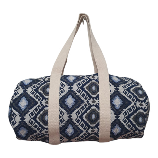 Boho Tribal Print Canvas Duffle Bag – Ethnic Pattern Travel, Gym & Weekend Bag with Beige Handles