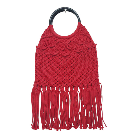 Handmade Red Macramé Fringe Bag – Boho Chic Ring Handle Purse for Women