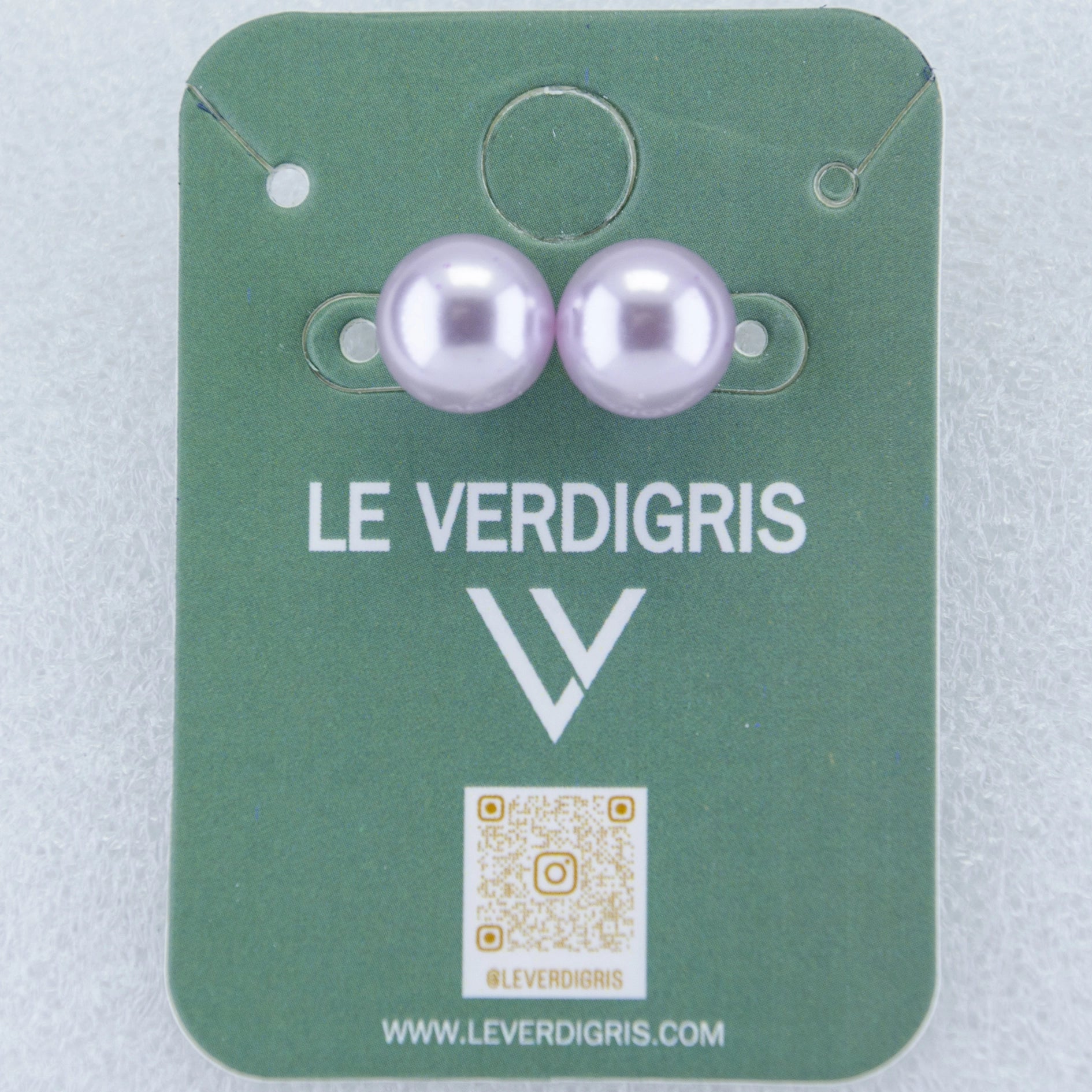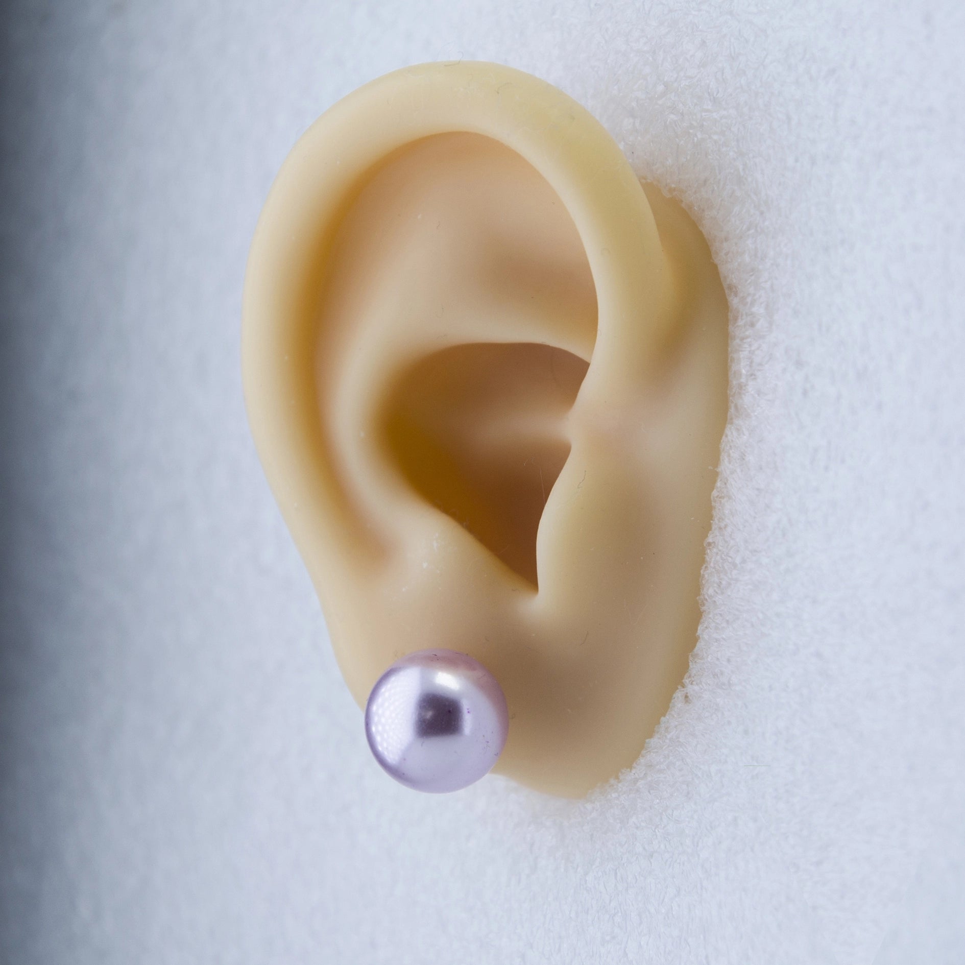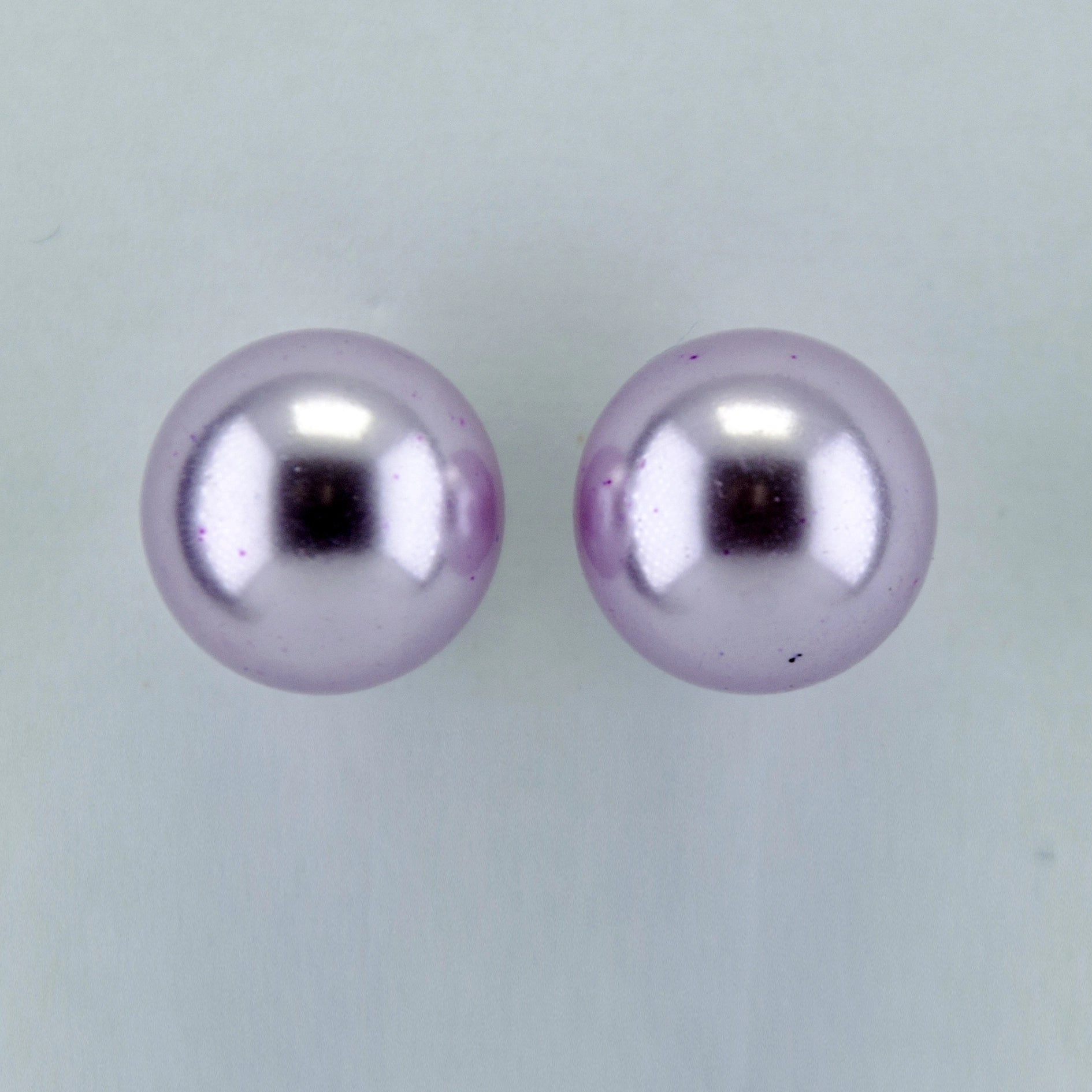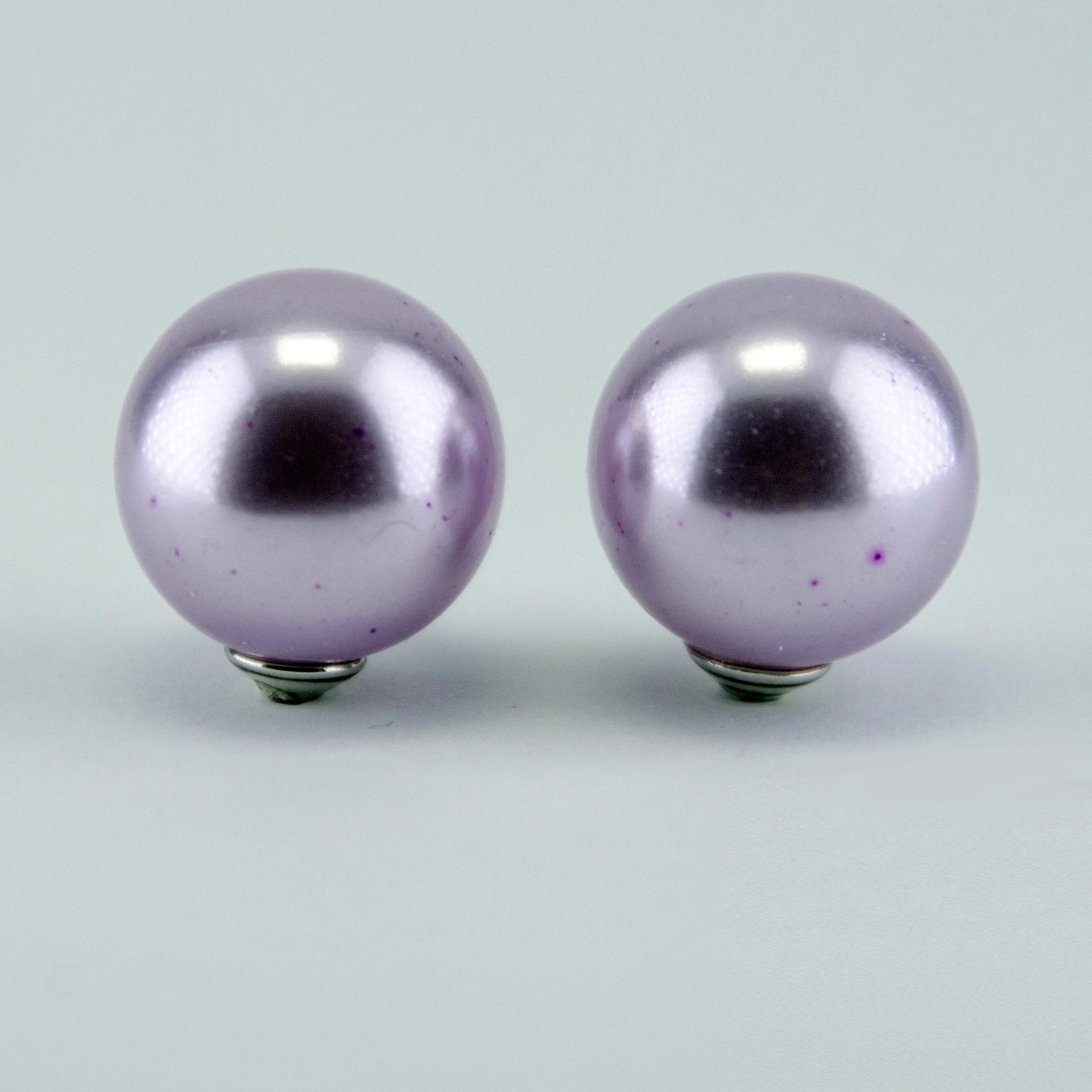 Rhodium Plated Shimmering Pearl Stud Earrings - light Purple